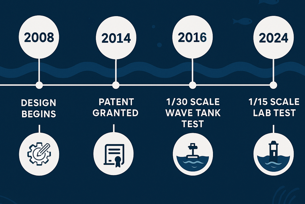 2024 – 1/15 scale prototype tested in laboratory settings, validating design improvements and performance metrics.