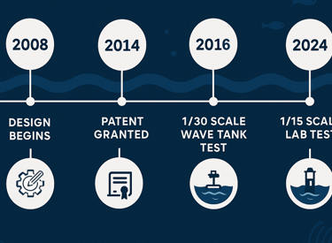 2016 – First 1/30 scale prototype successfully tested in a controlled wave tank environment.